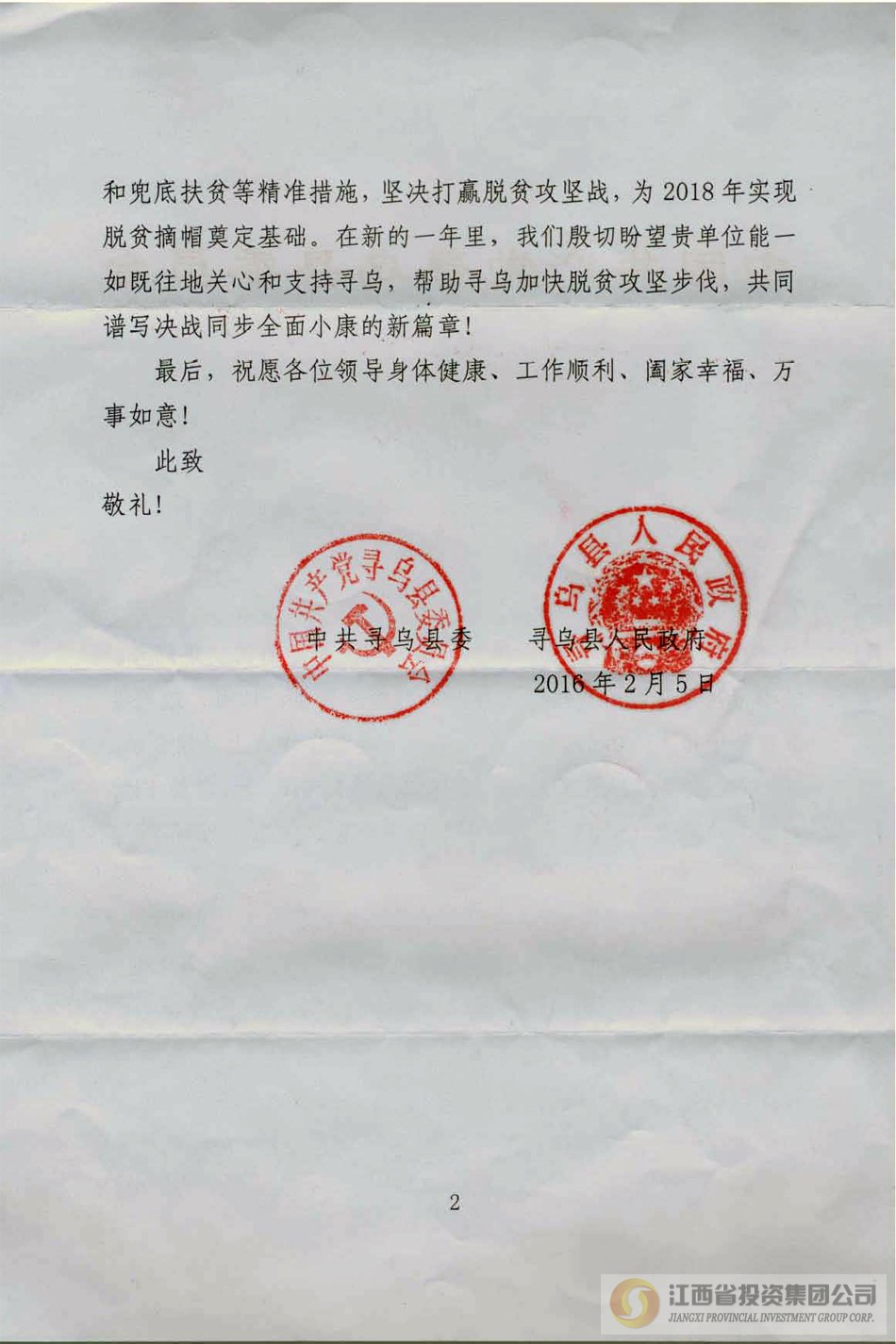 来自瑞金市、寻乌县的感谢信
